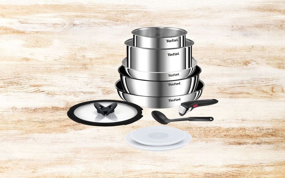 Contenu : 2 poêles (22/26 cm), 2 casseroles (16/20 cm), 1 sauteuse (24 cm), couvercles et accessoires
