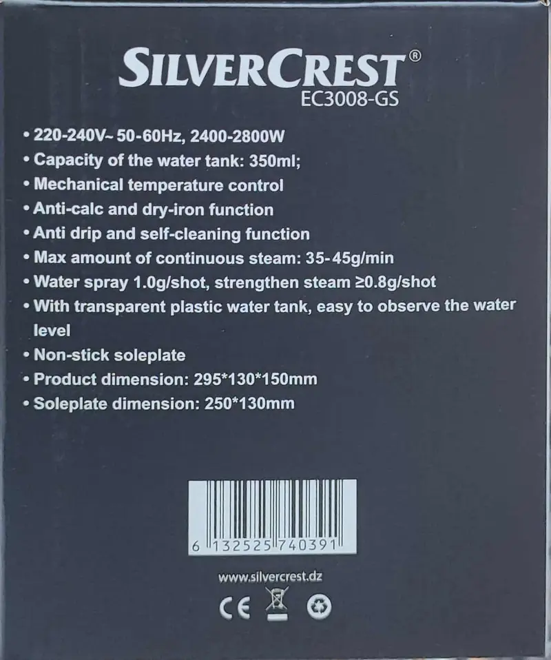 Fer À Repasser À Vapeur 2800w 350ml SilverCrest EC3008-GS