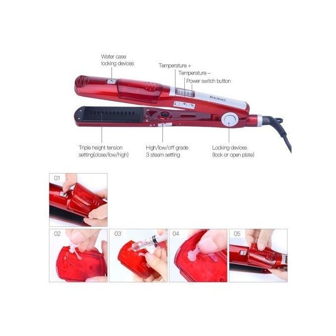 Pour un lissage impeccable et longue tenue, optez pour le lisseur vapeur KEMEI KM-3011. La vapeur hydrate les cheveux et détend la fibre capillaire pour des cheveux 4 fois plus lisses, 2 fois plus longtemps en 1 seul passage ! Ce fer à lisser vapeur convient à tous types de cheveux, même les plus difficiles à lisser.